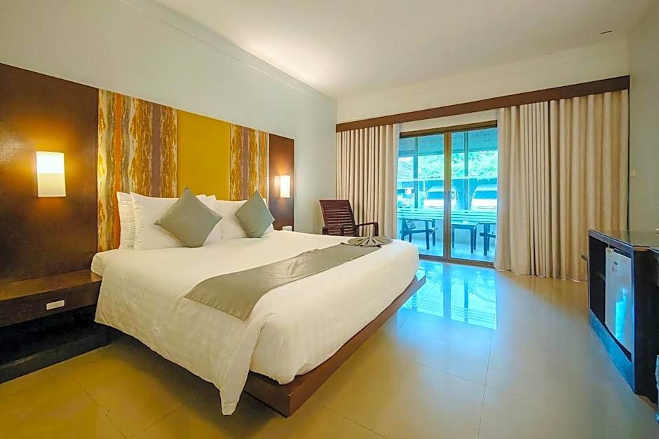 Modern, spacious room is steps away from the pool and garden.